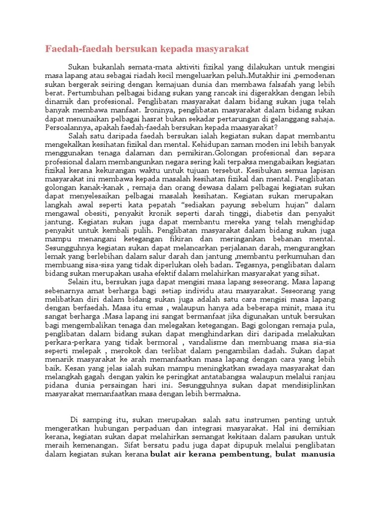 Karangan kepentingan sukan kepada negara faedah faedah bersukan kepada masyarakat.